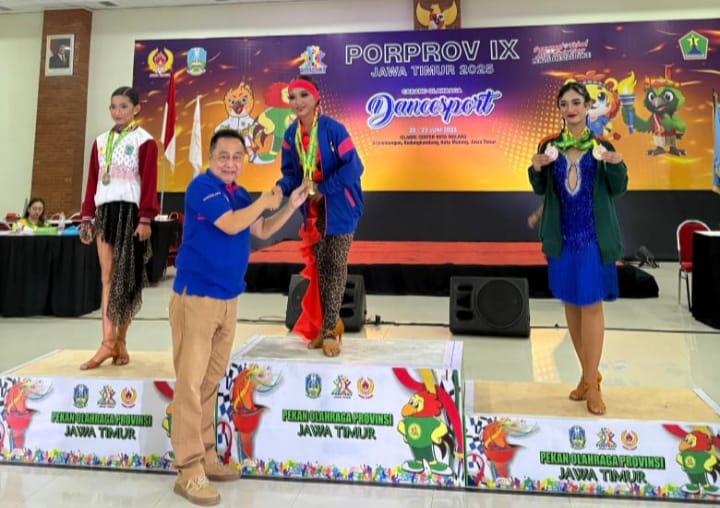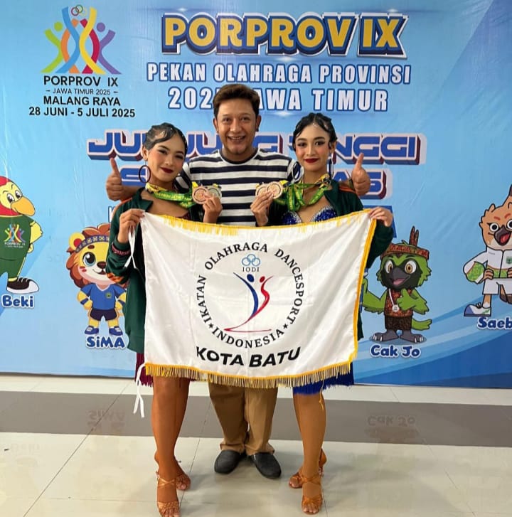 Kota Batu, lingkarmedia.com – Kontingen KONI Kota Batu kembali menyumbangkan medali pada ajang Pekan Olahraga Provinsi (Porprov) IX Jawa Timur 2025. Kali ini Cabor Ikatan Olahraga Dansa Indonesia (IODI) berhasil meraih 1 medali perak dan 3 perunggu, pada Minggu (22/6/2025).