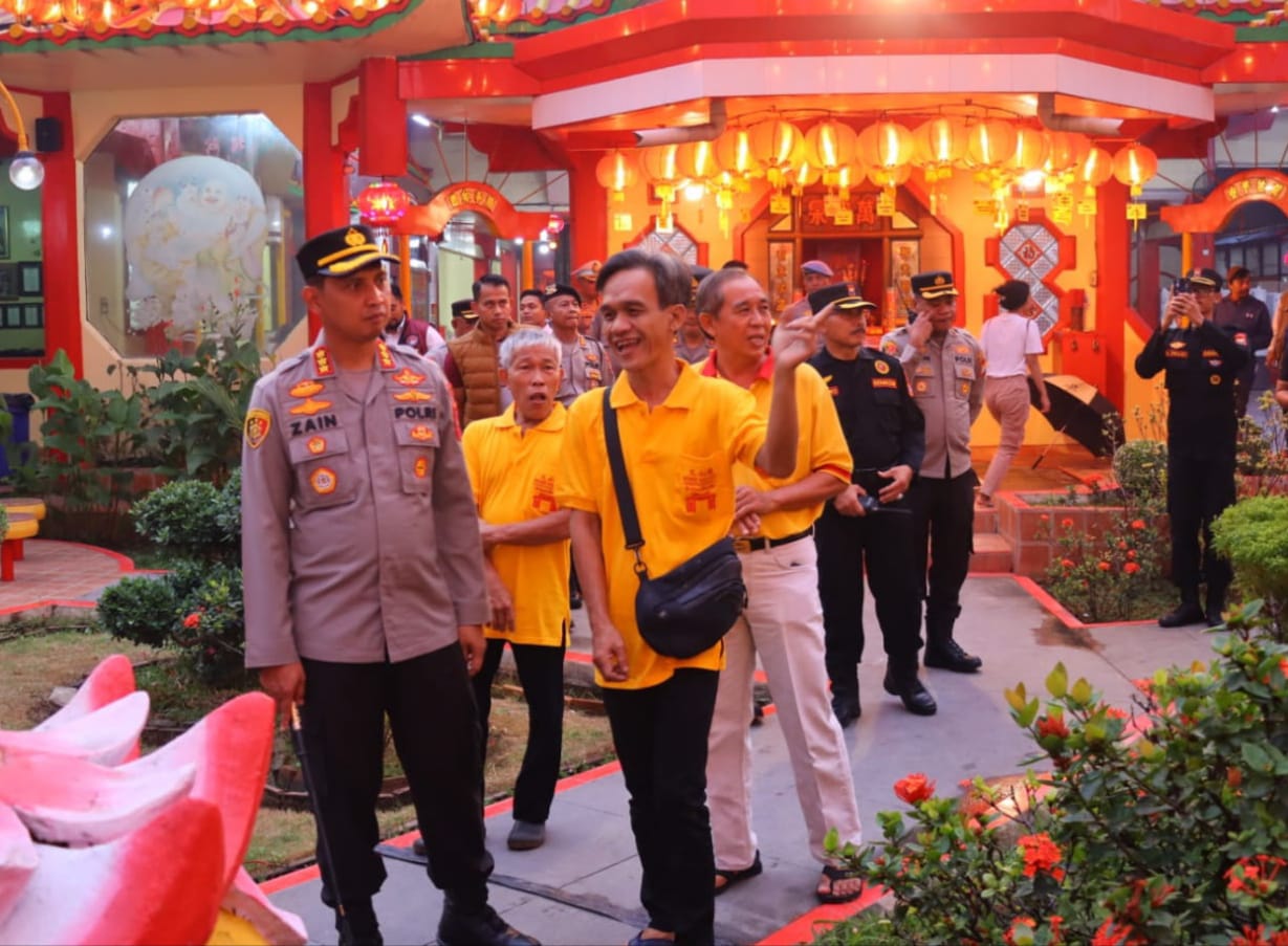 Kota Tangerang – Kapolres Metro Tangerang Kota, Kombes Pol Zain Dwi Nugroho didampingi Wakapolres, AKBP Eko Bagus Riyadi dan sejumlah Pejabat Utama (PJU) melaksanakan monitoring di 3 (tiga) Vihara berlokasi di Kecamatan Tangerang, kecamatan Karawaci dan Kecamatan Neglasari. Selasa (28/1/2025) petang. Tiga Vihara itu yakni Vihara Boen Tek Bio, Vihara Nimmala Boen San Bio dan Vihara Yan Sen Bio.