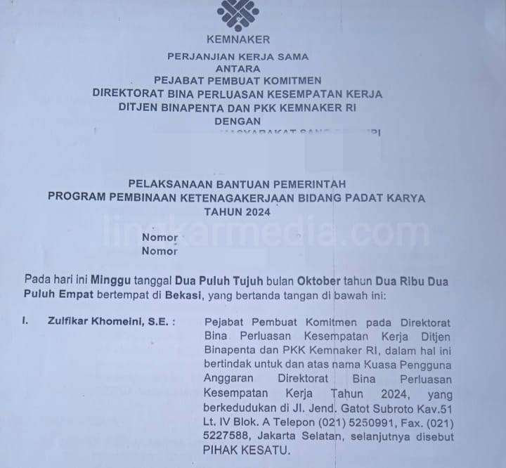 Undangan Kemenaker tersebut merupakan agenda penandatanganan Perjanjian Kerjasama Bantuan program tersebut yang dilaksanakan di Aston Imperial Bekasi Hotel & Conference Center Bekasi. Kedatangan 4 pokmas dari 8 pokmas yang diusulkan ini menjadi satu pertanyaan tersendiri.