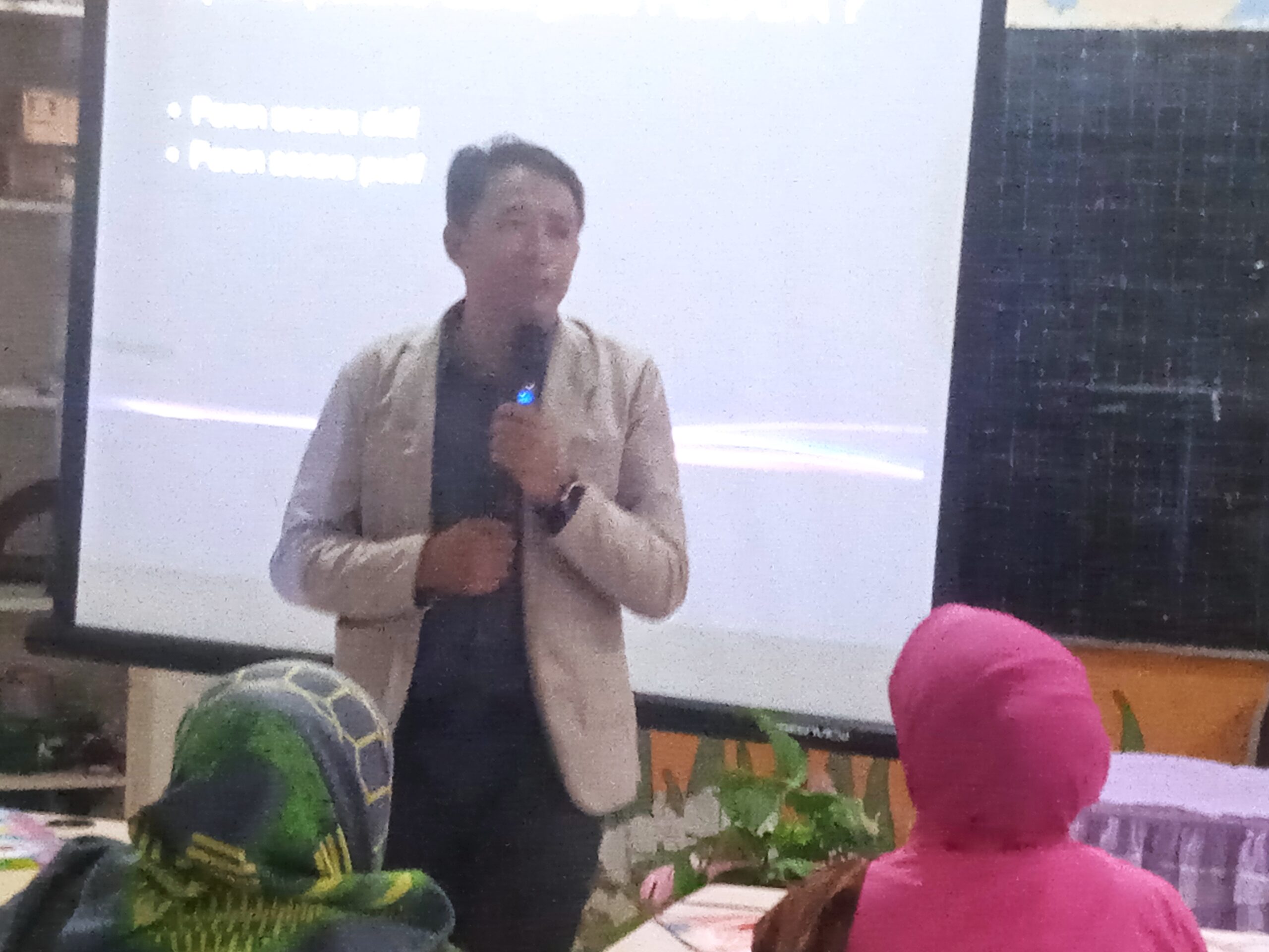 Dalam sosialisasi, Ketua KPU Kota Batu Heru Joko Purwanto langsung memberikan materinya dengan tema ” peran guru dalam mensukseskan pilkada serentak tahun 2024 “.