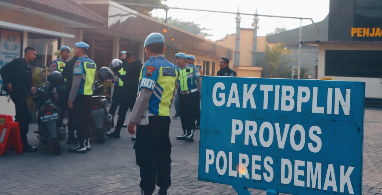 Demak – Seksi Profesi dan Pengamanan (Sipropam) Polres Demak melaksanakan Penegakan Ketertiban dan Pendisiplinan (Gaktibplin) anggota di pintu masuk Polres Demak, Selasa (11/02/2025).
