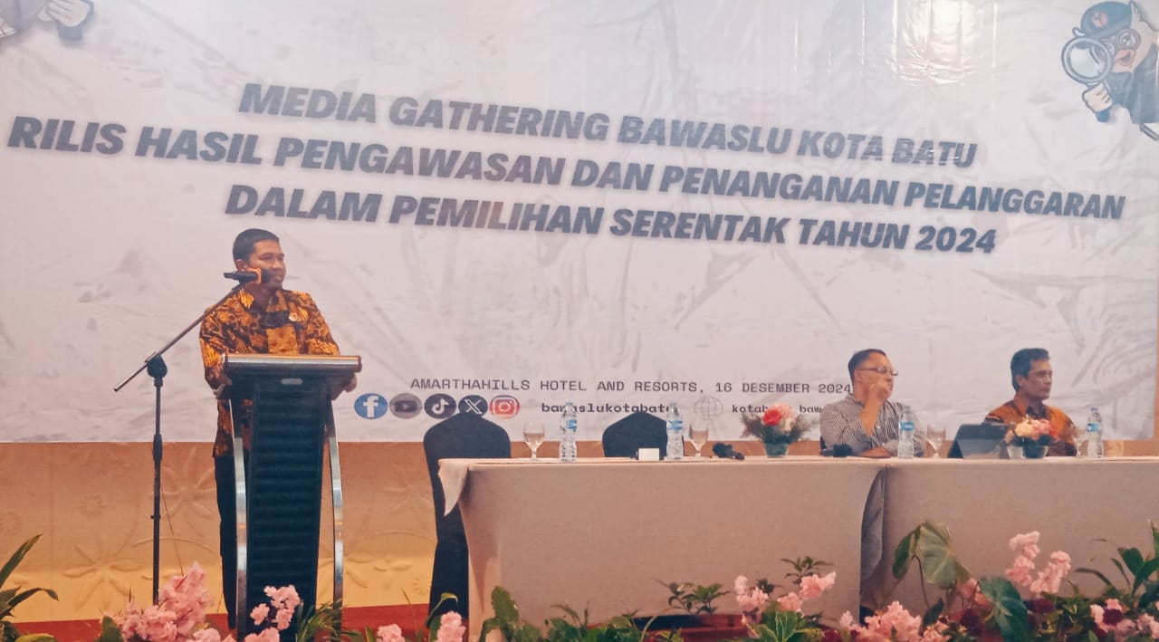 Kota Batu – Penyampaian laporan sekaligus pertanggung jawaban kepada masyarakat atau publik atas kerja – kerja dalam penyelenggaraan tahapan pilkada serentak 2024 di Kota Batu, Badan Pengawas Pemilu ( Bawaslu ) Kota Batu menggelar media gathering bersama awak media di Amartahills and Resort , Senin ( 16/12/2024 ) siang.