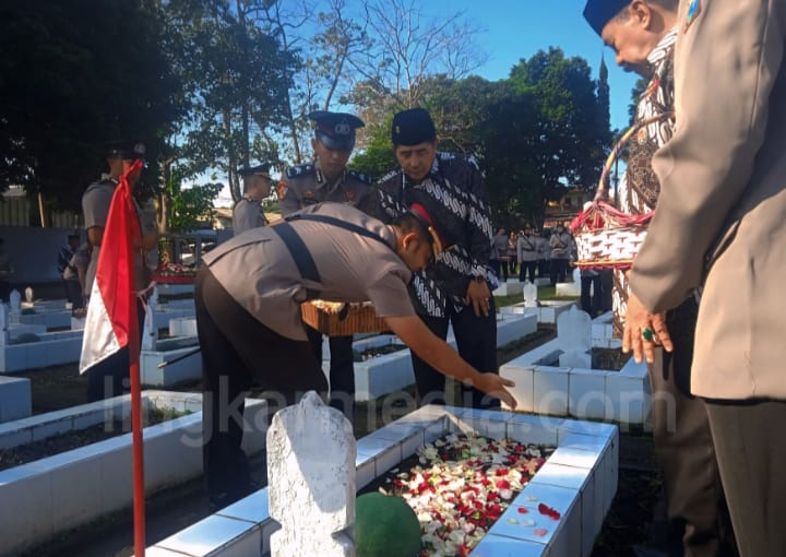 “Dengan melaksanakan kegiatan ziarah dan tabur bunga di Makam Pahlawan ini, selain untuk mengenang, menghargai dan menghormati jasa para Pahlawan juga saya berharap seluruh anggota dapat meneladani dan menanamkan semangat jiwa pengorbanan itu didalam hatinya masing–masing sebagai Bhayangkara Negara sehingga dapat menjalankan tugas sehari-harinya dengan professional, tulus dan ikhlas demi terwujudnya Polri yang Presisi,” terang Kompol Khusnul.