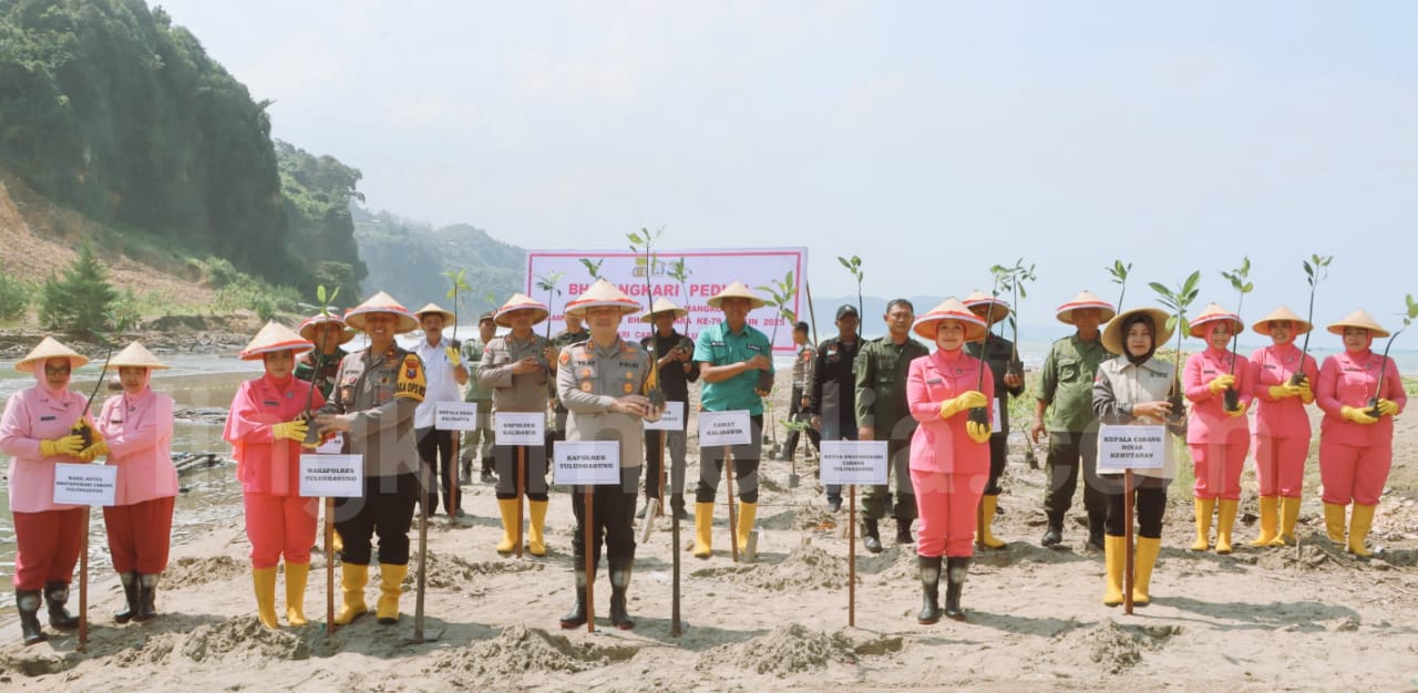 Polres Tulungagung dan Bhayangkari Gelar Baksos dan Tanam Mangrove Sambut Hari Bhayangkara Ke-79